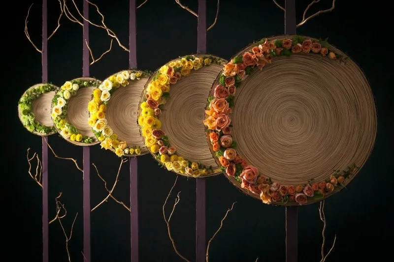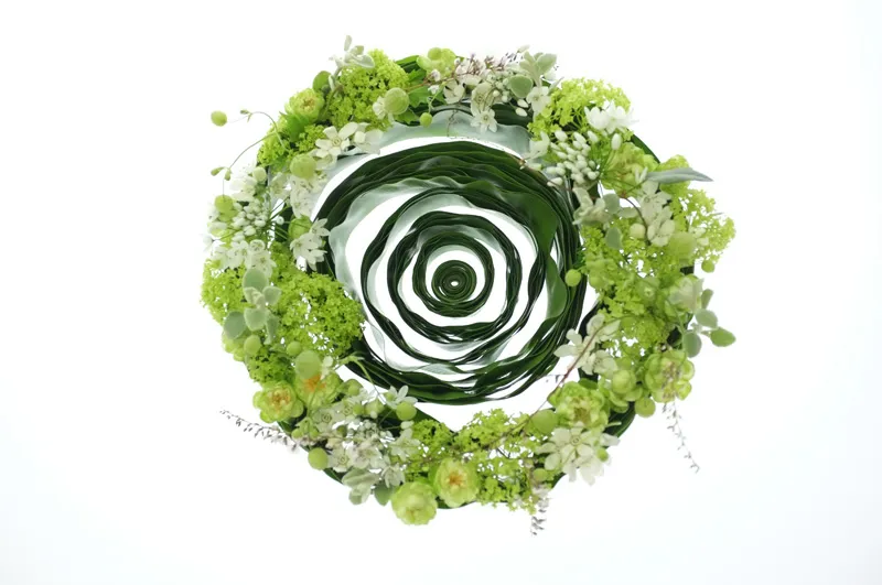 作品づくりで一番大切なのは、花々が自身をどう活かして欲しいと 思っているか、その声を聴くことだと思っています。花の美しさを皆さんに お伝えするのが自分の使命ですから、その時出会った花を美しく見せるため に、その都度テクニックを合わせるのが重要かと。私の場合、まずデザイン ありきではなく、花ありきなのです。 花に携わって26年。20年を過ぎた頃から、“花の声”が聴こえるようになりま した(笑)。自分なりに真正面から花と向き合ってきた賜物と考えています。 今なお、日々ワクワク、ドキドキが味わえるなんて、 こんなに素晴らしい仕事はありません。