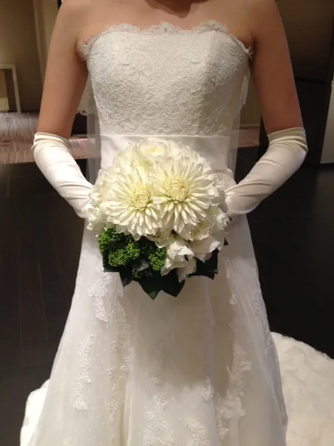 外資系ホテルのウエディングではブライダルブーケを中心としたクリエーションを 行っています。醍醐味はやはり、新しいものを創造できること。 形にならないものを考え抜いて、新たなブーケが突然、出来上がります。 以前、ファッションモデルの新婦様からこんなご注文をいただきました。 「天使と悪魔をテーマに、ブーケを提案してください」――。 お花をほとんど使用しないデザインになりましたが、 とても喜んでいただけました。誰も見たことのないブーケを、 ゴージャスなBrideが嬉しそうにお持ちになっている。 その様子は私にとって最高の瞬間なのです。