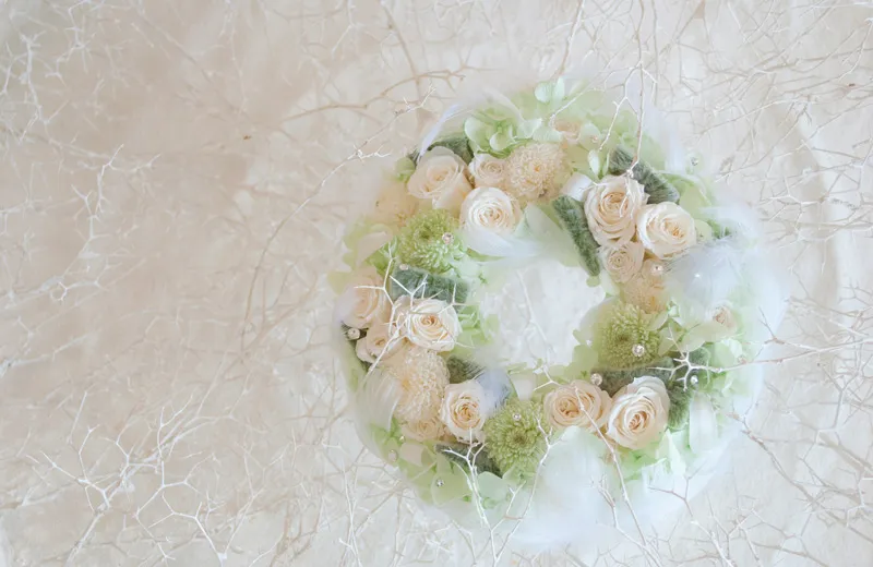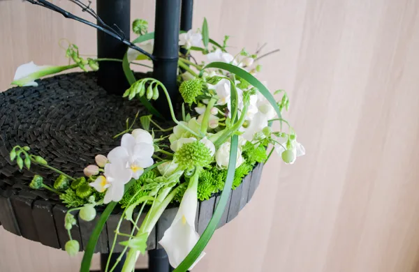 作品制作の際は、植物の持つ生命力を大切に、 花それぞれの個性を際立たせながら、自然の風景を切り取ったような 成長感のあるものに仕上げることを重視しています。 絵画や自然の景色、建築物などからイメージを膨らませることもありますが、 最も刺激になるのは、人との会話。 コミュニケーションは無限の可能性を秘めていますね。 また、結婚や誕生日・記念日、退職、葬儀など、人生の節目に使われる ことの多い花に携わる以上、花によってお客様が嫌な思い出を残さないように することも、自分なりのこだわりとして胸に刻んでいます。 これからは生花だけでなく、 プリザーブドを使った造形的な作品にもトライしてみたいと思っています。